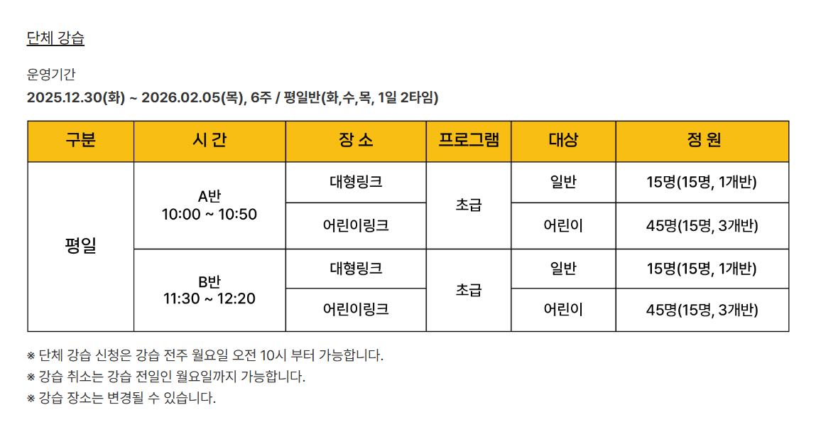 이와 함께 시민들의 자발적인 참여를 유도하기 위한 '스케이트장 봉사 프로그램'도 운영됩니다. 안전요원 지원, 정비 지원, 어린이 스케이트 지도 등으로 구성되며, 참가자들은 자원봉사 시간 인증서를 받을 수 있어 학생과 청소년들의 적극적인 참여가 기대됩니다.