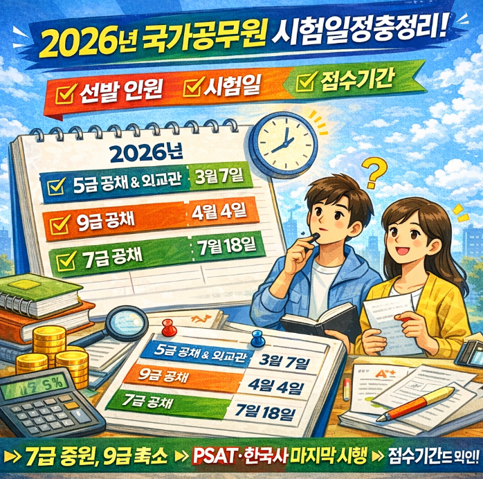이번 시험 계획의 또 다른 중요한 변화는 시험 제도로의 전환입니다. 공무원 시험에서 실시해 온 공무원 자격시험(PSAT)**과 한국사 시험은 2026년 시험을 끝으로 종료됩니다.