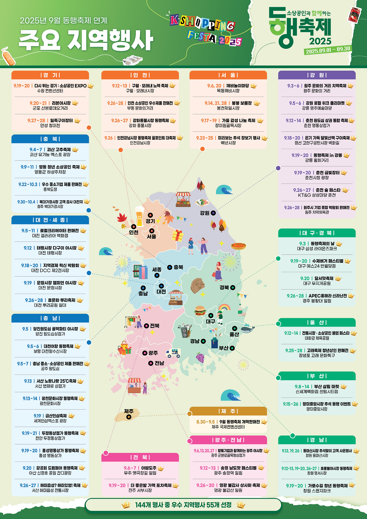 올 9월 동행 축제는 단순히 저렴한 제품을 구매하는 행사가 아닙니다. 소비자들이 행복하게 지갑을 열고 소상공인들이 희망의 빛을 보며 지역 경제가 활성화되는 '윈윈 플레이스'입니다.